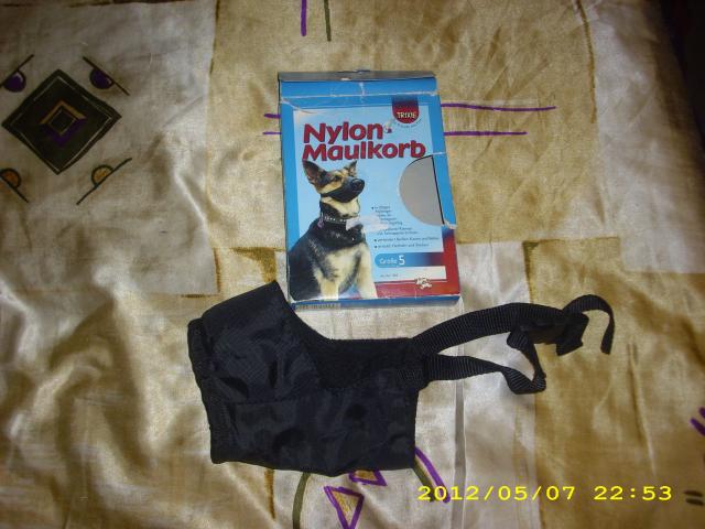 5 dydzio - dideliam suniui medziaginis antsnukis, neerzina suns ir gerai apsaugo nuo ikandimu, stiprios medziagos, naujas
