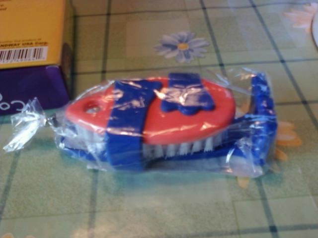 Drabužių šepetys be rankenos, su laikykliu. Laikiklis - mėlynas šaržuotas žmogutis laiko apglėbęs šepetį.Naujas.