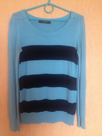 Dryžuotas mėlynas juodas megztukas džemperiukas.