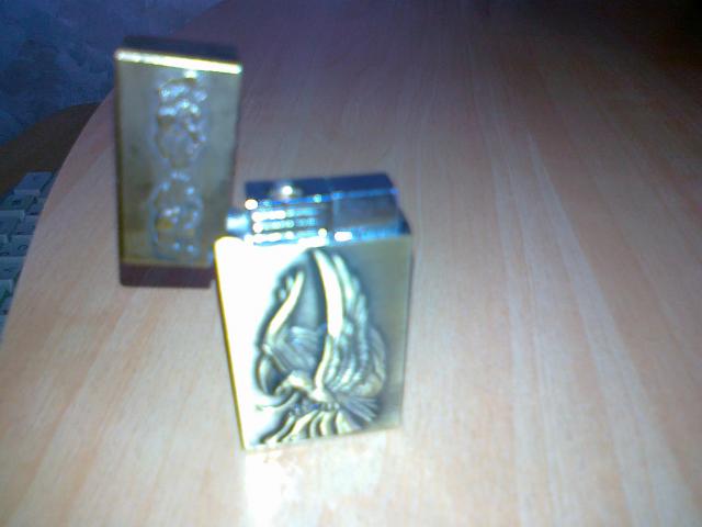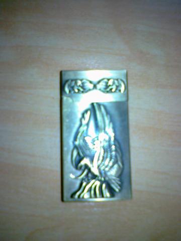 Dujinis ziebtuvelis,metalinis korpusas su erelio isgraviravimu.Auksines spalvos.