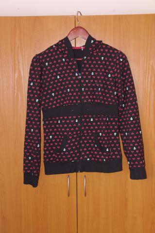Džemperis yra su mažom širdutėm ir kaukuolytėm. labai mažai nešiotas. Tinka smulkiai merginai - S/XS dydis.