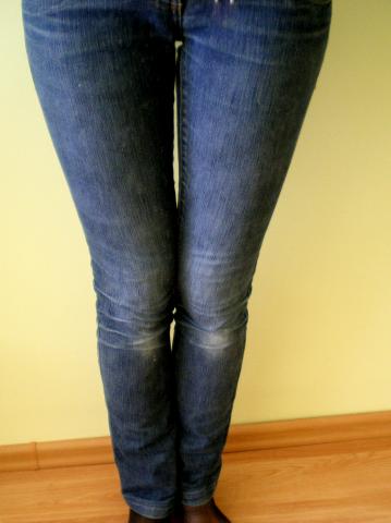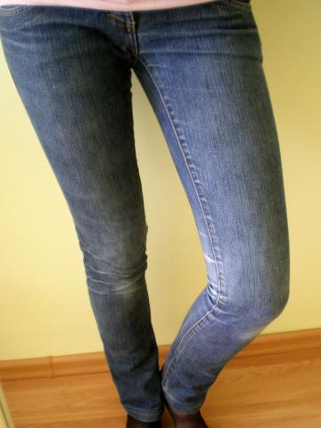 Melynos spalvos dzinsai, deveti ir kiek pabluke, bet vistiek patogus ir grazus :) siaurejantys
