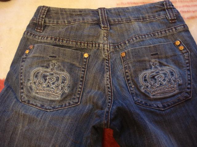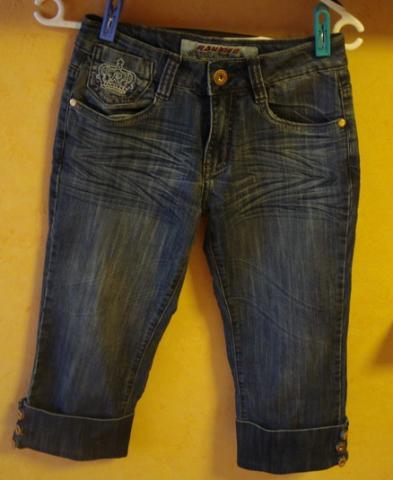 Labai gražūs pasiuvinėti džinsiniai bridžai, beveik nauji.
