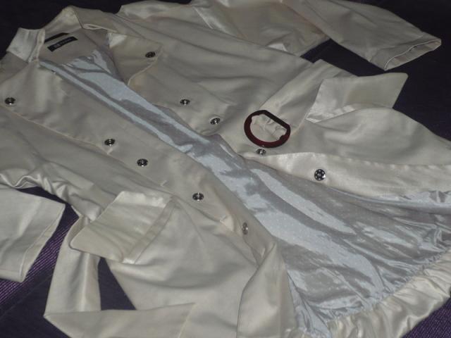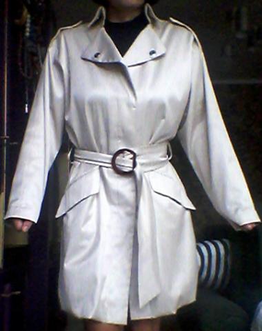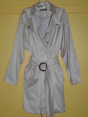 Naujas,išskirtinio,laisvesnio modelio,labai jaukus,lengvas lietpaltis.Šiek tiek blizgaus, slidaus audinio,smėlio/kūno spalvos,su taškuotu pamušalu. Pečiai pažeminti,reglanas,atstumas tarp rankovių maždaug 48,5 cm.Ilgis nuo kaklo iškirpimo iki rankovės galo 75 cm.Rankovė nuo peties linijos 56 cm.Ilgis 93,5 cm.Plotis ties kišenėmis 60 cm. Išorė: 56% medvilnė. 39% poliesteris. 5 % elastanas. Pamušalas: 100 % poliesteris.