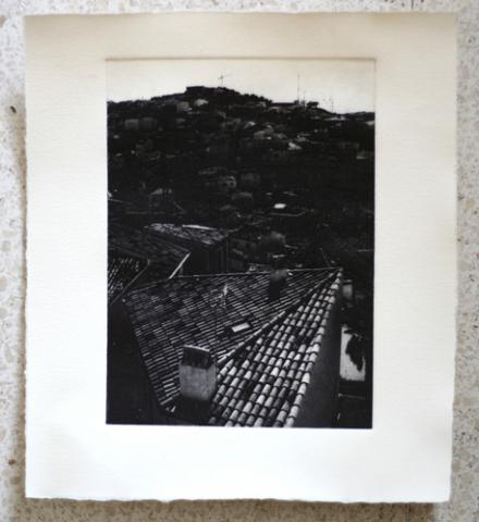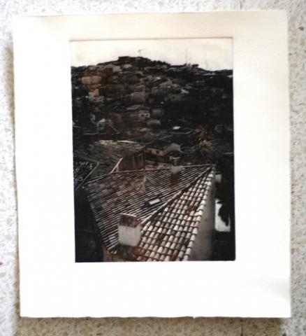 Fotopolimeras panasiai kaip ofortas.. taip pat itrinamas dazais ir spaudziama ant dregno popieriaus. Cia pavaizduota Cuenca Ispanijos miestelis. Made by me :)
