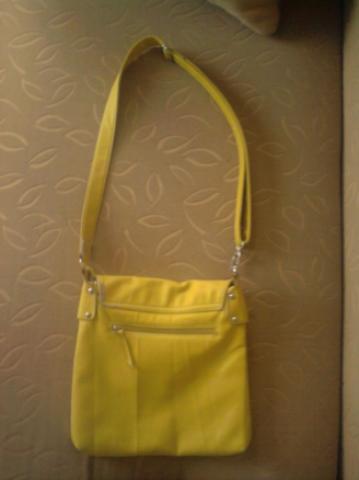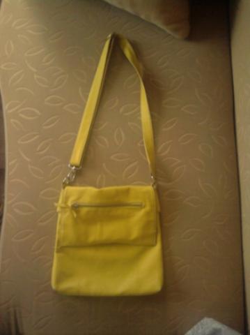 Geltona tašė per petį.