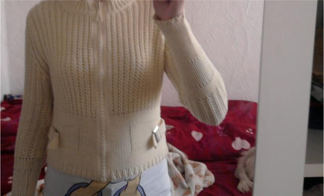 Geltonas grazus megztukas ant uztrauktuku briljantu imitacija,viena karta devetas jokiu defektu.