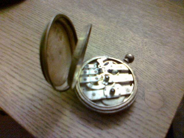 Sidabrinis laikrodis,užvedamas raktu.neveikiantis.manau tinka tik dalim,o geras meistras ir atstatytu gal.galimas keitimas i rusiška rankini mechanini laikrodi poljot.