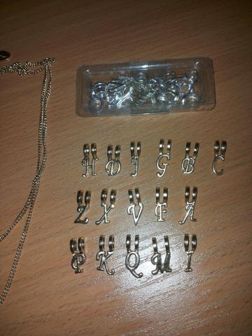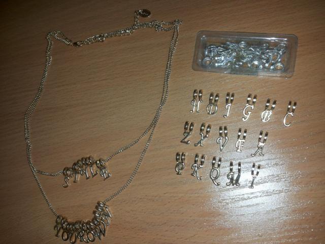 Grandinele su papildomom raidem(auksines ir sidabrines spalvomis).Galit susidet kokius norit zodzius.tik raidziu uzdejimas nera labai patogus