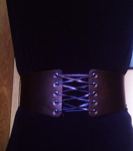 Platus diržas-korsetas. Labai gražios spalvos. Reguliuojasi. Prekinis ženklas: NEXT. Reguliojasi maždaug nuo ~ 80 cm iki ~ 64 cm. KAINA: 24 Lt + p. išlaidos
