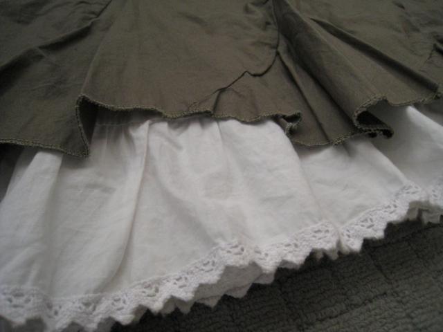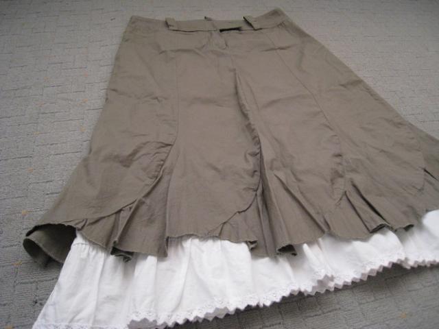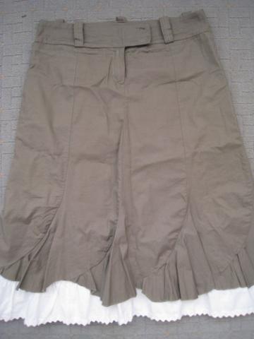 S dydis, sijonas siek tiek zemiau keliu, yra varpelio formos kazkiek, po haki spalva yra baltas pasijonis, jo galai islinde ir apnerti nerinukais:)