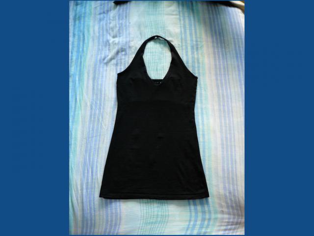 Mmm, gražus rūbas :) Šiaip čia yra tiesiog ilga palaidinė, apnuogina nugarą, didelė graži iškirptė, bet kadangi aš esu mažo ūgio (155cm), tai man ji atrodo kaip suknelė :) Dydis XS, bet galbūt tiktų ir S, nes medžiaga tempiasi ir priglunda. Dėvėta. Juoda.
