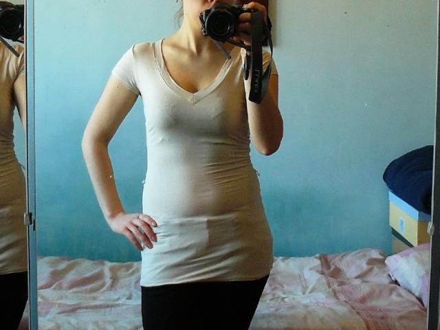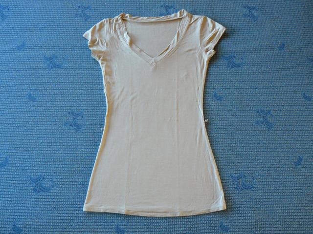 Nešiota kažkiek, neperdaugiausiai. Smėlio spalvos, plonytė, ilga maikutė (foto daryta ant 155cm ūgio merginos) Dydis XS - S.