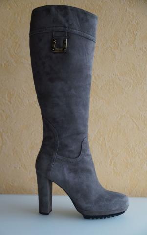 Moteriški ilgaauliai verstos odos batai be pašiltinimo. Patogus kulnas, neslidus, storokas padas. Modelis yra pilkos spalvos su užtrauktuku, itin lengvas. Medžiaga: natūrali, tvirta, versta oda. Aulo aukštis: 38 cm (priklausomai nuo dydžio). Aulo plotis: 18 cm (x2) Kulnas: 10 cm. Yra ir 39 dysis. Nemokamas siuntimas. Daugiau info www.pirkbatus.lt