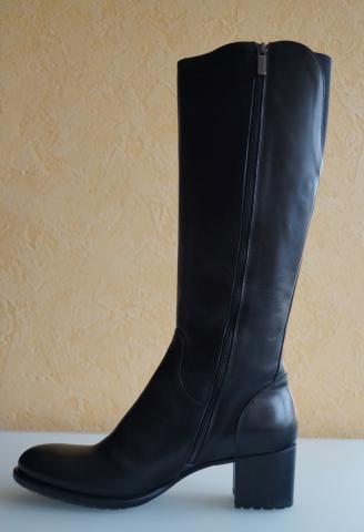 Nauji batai. Moteriški ilgaauliai odinia batai be pašiltinimo. Patogus kulnas, neslidus, storokas padas. Modelis yra juodos spalvos su užtrauktuku ir guminiu intarpu blauzdos viršuje Medžiaga: natūrali, tvirta oda. Aulo aukštis: 40 cm (priklausomai nuo dydžio). Aulo plotis: 19 cm (x2) Kulnas: 6 cm. Nemokamas siuntimas, galimybė grąžinti.