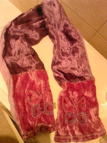 labai gražus šalis is veliuro su drugeliais siuvinetais is karoliuku viename jo gale truputi nubyreja jie bet turinti "geras" rankas mergina tikrai sugebes susitvarkyti:)labai pagyvina apranga")