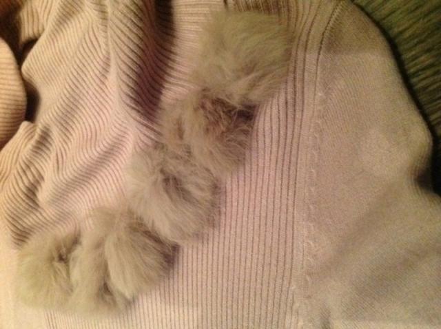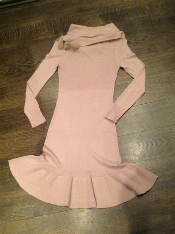 Švelnaus pudros atspalvio megztos medžiagos suknelė su natūralaus kailiuko detalėmis. Gražiai banguojanti apačia. platus ir didelis kaklas. Devėta, be defektų. Išmatavimai: pečių plotis 42. Krūtinė 38, liemuo 32, klubai 40, visas ilgis 95. Matmenys ramybės būsenoje, dėvint tempiasi (po 5-8cm kažkur). Tinka dėvinčioms 34-36, mažą 38 dydį. Kailiukas vandens nebijo - pašukuoti tik išskalbus reikia (plauta buvo rankomis). Sudėtis: 50 viscose, 25 acrylic, 20 cashmere, 5 elastane, natūralaus kiškio kailio detalė