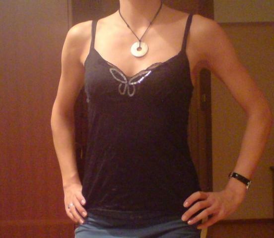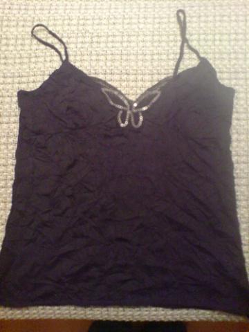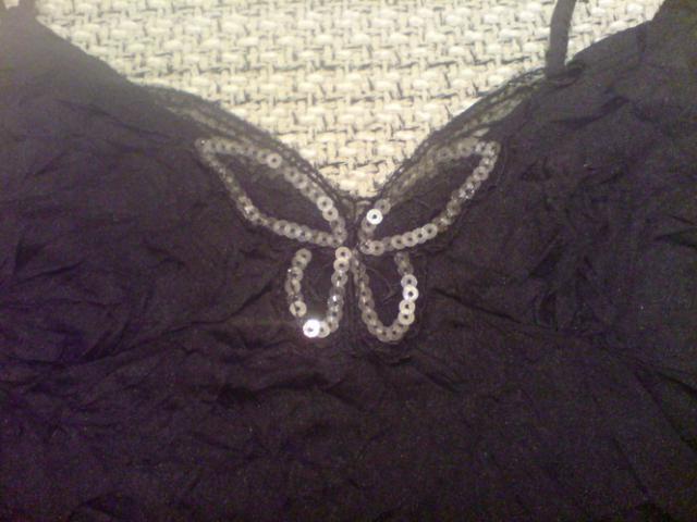 Juoda tuputį permatoma palaidinė,medžiaga glamžyta.Priekyje išsiuvinėtas drugelis.Dėvėta keletą kartų.Dysis 34-36