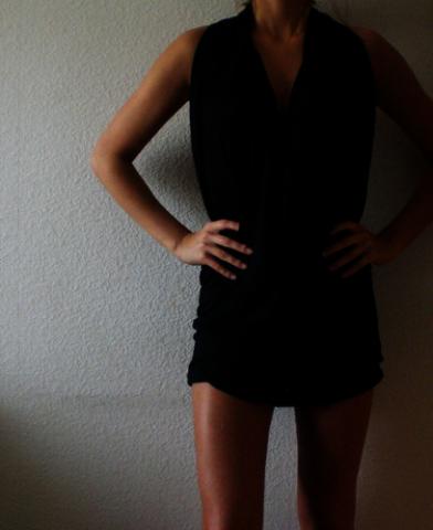 Universalus naujas drabužis. Galite užsidėti ir kaip vakarinę suknelę, nešioti ant timpų, ant džinsų arba kaip puošnią bliuskutę, kaip ir matote nuotraukoje. Plonos trikotažinės medžiagytės. Konkretaus dydžio neturi. Pati nešioju S/M ir man tinka, tiktų ir didesniems dydžiams, nes rūbas tamposi, reguliuojasi ilgis. Daili iškirptė nugarojoe. Labai gražiai atrodo ir su diržu.
