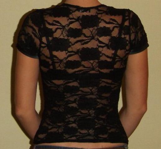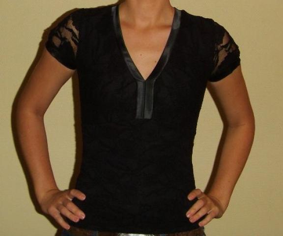 Juoda gipiūrinė palaidinė. Dydis manau yra tarpinis tarp XS ir S. Beveik nenešiota. Palaidinės ilgis yra 56 cm. Nugara persvieciama.