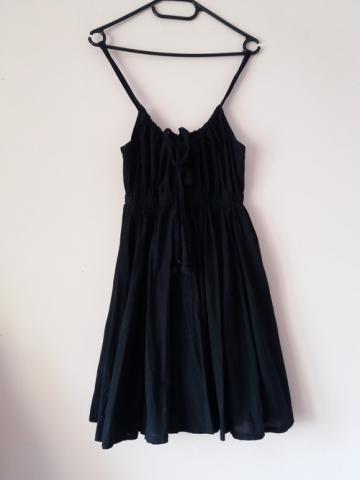 Juoda suknelė. Dydis gana universalus, kadangi petnešėles gali priekyje surišti kaspinu ir taip pasireguliuoti dydį :)