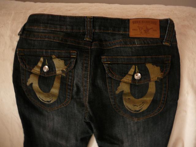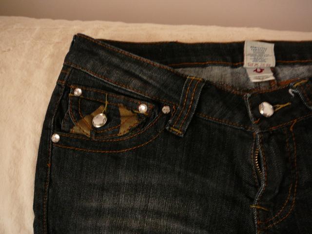 Juodi tiesūs džinsai, dydis 27 "True religion", pirkta usa.Žemas juosmuo. Su samanų spalvos padažymais ant kišenių ir stiklinėm sagutėm. Nešiota labai mažai.