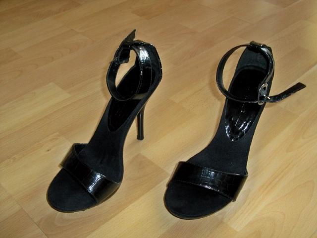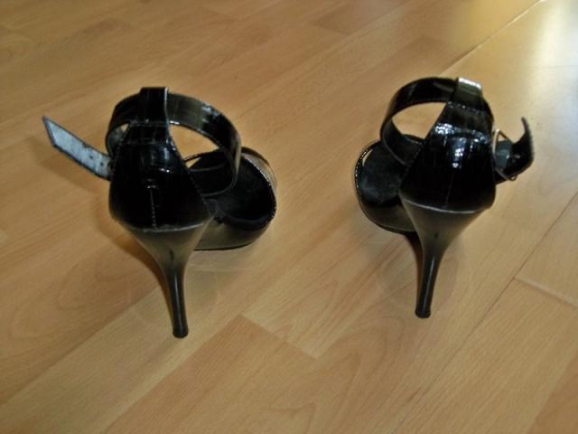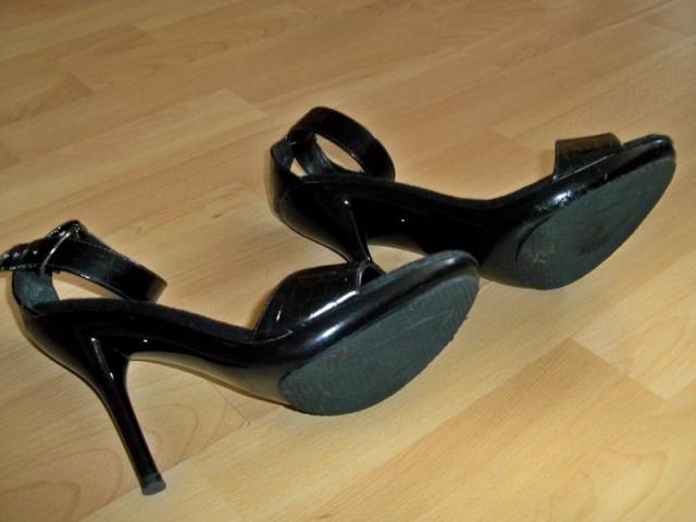 Labai geros būklės ( šiek tiek padas šone apsitrynęs ir dirželiai- matosi, kad buvo naudotos basutės), bet tai tikrai smulkmenos, visai jų nesimato. Basutės puikios, kulno aukštis 11,5 cm,apie 1 cm platforma. susisega dirželiu.Labai gražios, elegantiškos. Dydis atitinka 39,5-40 dydį, viduje nurodytas dydis 6. Basutės tvirtos.Vidpadžio ilgis 25,5 cm.