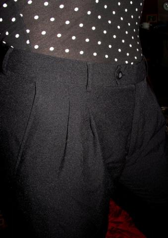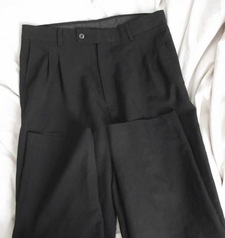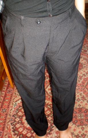 Juodos kelnės paaukštintu liemeniu tiesaus kirpimo