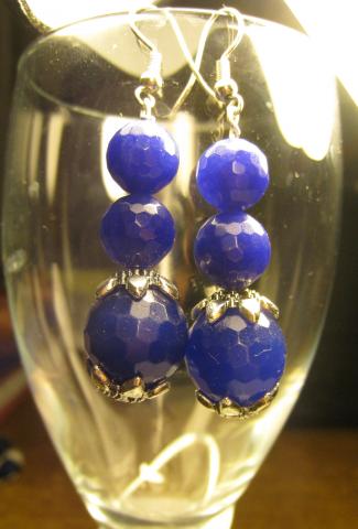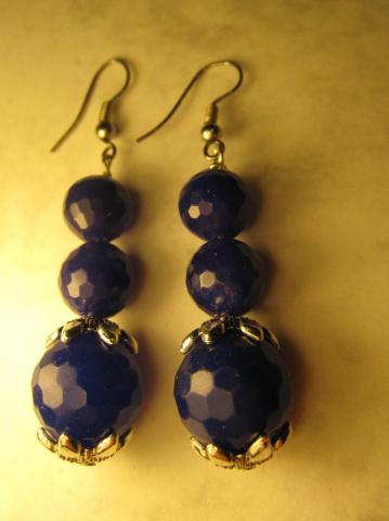 Žavūs, rankų darbo kabantys, tamsiai mėlyni agato auskarai tinkantys pasipuošti bet kokia proga.
