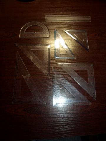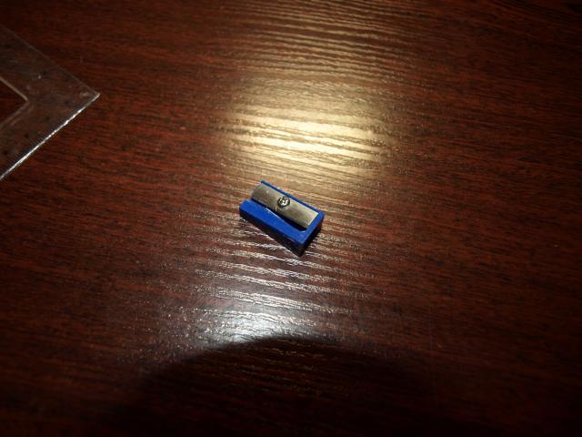 kai kur gal aptrinti, o matlankis lankelyje įlūžęs, bet šiaip sveiki, geri ir galima naudoti. geltonas drožtukas iš tikrųjų mėlynas (tiesiog nuotrauka iš interneto), abu mėlyni plastmasiniai, pilkas metalinis su dviem skirtingo dydžio skylėm "skylėm"