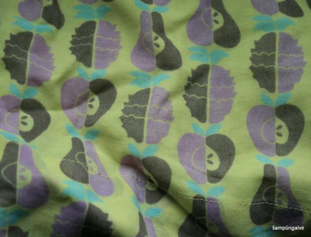 Tai labai mielas vasariškas sijonas su vaisiais (spalvos panašiausios paskutinėje foto)