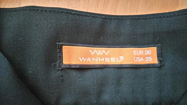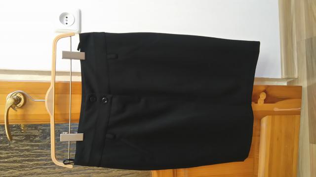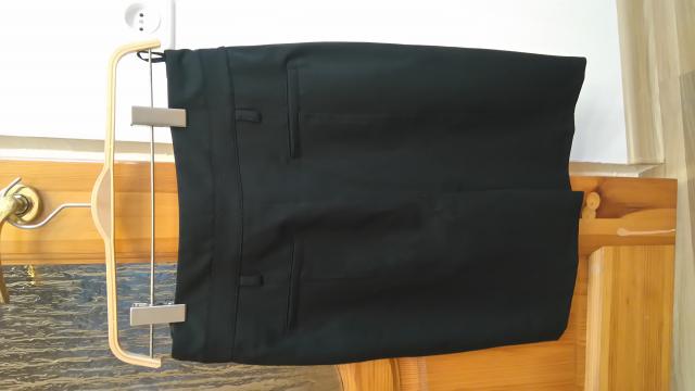 Dėvėtas tik kartą, su užtrauktuku ir dviem sagutėmis priekyje, skeltukas gale, keturios kilputės dirželiui, priekyje ir gale kišenėlių imitacijos. Ilgis 52cm, liemuo 37cm, klubai 40cm. 36 dydis.