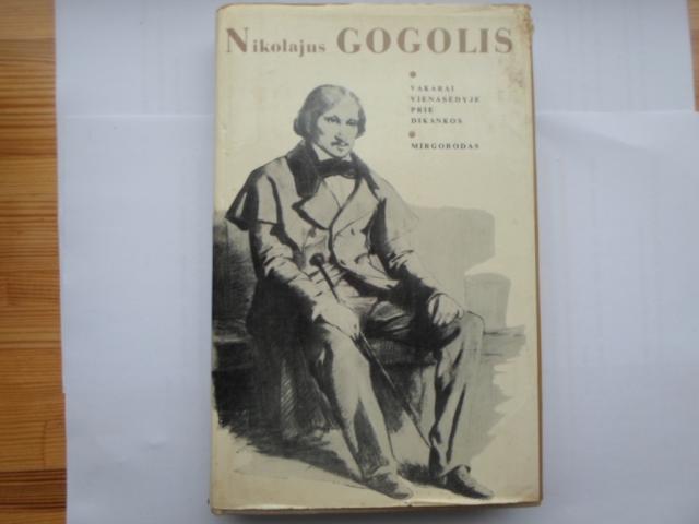1979 m. leidinys. Knyga su dviem Nikolajaus Gogolio kūriniais Vakarai vienasėdyje prie Dikankos ir Mirgorodas. Viršuje esantis popierinis aplankas aptrintas, šiaip knyga tvarkinga.