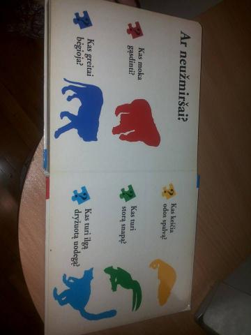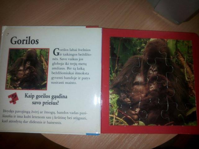 Knygutėje yra lavinamoji, joje yra aprašomi gyvūnai ir šalia yra puzlė. Viršelis apsitrynęs, bet puzlės pilnos, nesugadintos. Dėl kainos galima dėrėtis