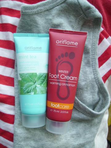 liko po puse,sildantis koju kremas su cinamonu,ir gaivinantis veido su meta
