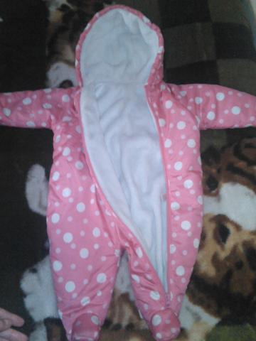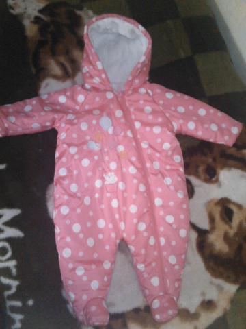 labai grazus kombinezonas mergaitei,yra ir pirstines tokios pat. dydis 9-12 mons.