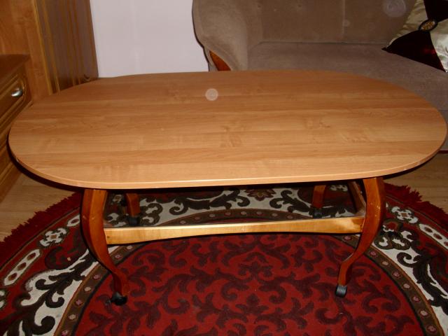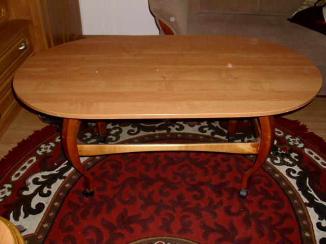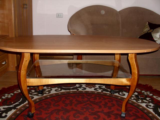 Labai geros būklės medinis staliukas. Be defektų, apačioje su stiklu, ant ratukų. Neaukštas, nebraižo grindų.