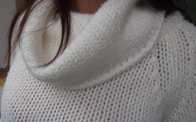 Labai originalus, elegantiškas megztukas aukštu kaklu. Malonus dėvėti, "nesikandžioja" :)