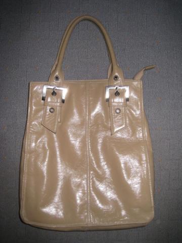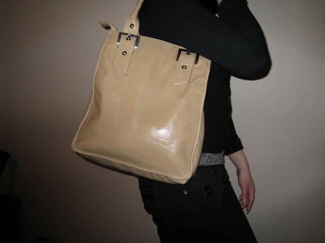 Jauki, minimalistinio stiliaus tasyte, smelio spalvos lakuota dirbtine oda