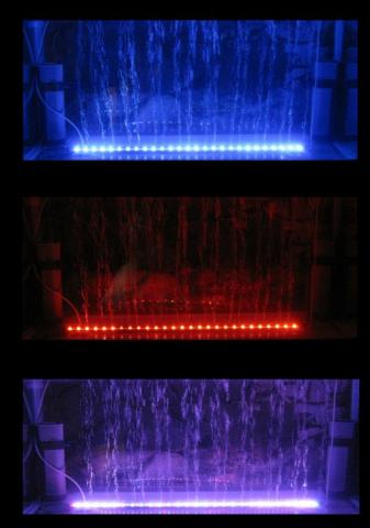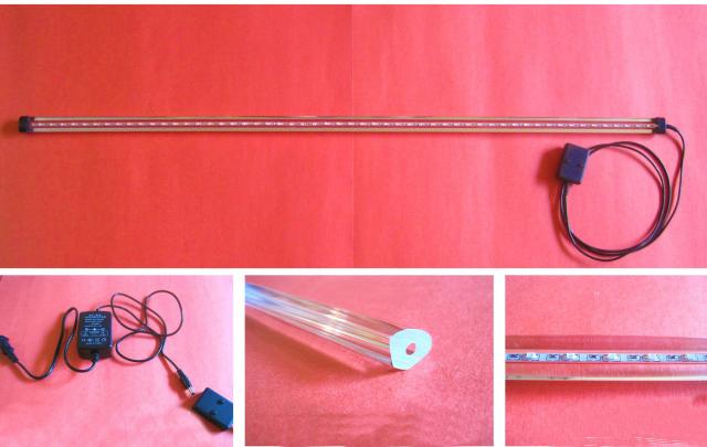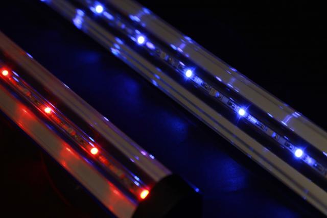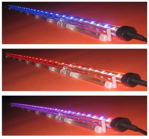 Naujas LED šviečiantis šviestuvas. Privalumai: 1 Šviestuvas turi 3 spalvos vienoje lazdelę, dviejų mygtukų jungiklis, kuris leidžia vartotojui nustatyti raudona, mėlyna, arba abiejų spalvų kontrastą. 2 LED šviestuvas padidina Jūsų akvariumo spalvų intensyvumą 3 LED lemputes sunaudoja vien tik 3.3W, taupydamos didelį elektros energijos kiekį. Šviestuvo ilgis 92cm.