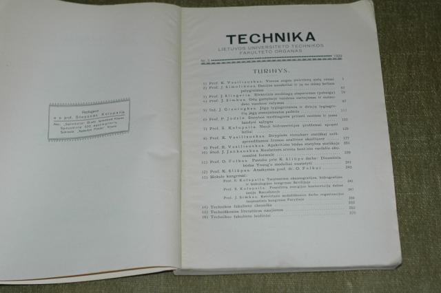 Lietuvos universiteto leidinys "technika nr 5" 1929m.