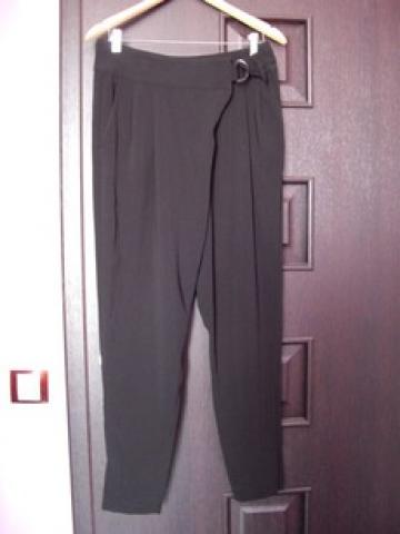 Juodos aladino tipo kelnės iš Lindex. Jos medžiagos kaip kostiuminės. Ties klubais plačios, su kišenėmis, ties blauzdomis siauros ir turi sagutes. Ilgis-100cm Liemuo-80cm Klubai-100cm Blauzdos-35-38cm.