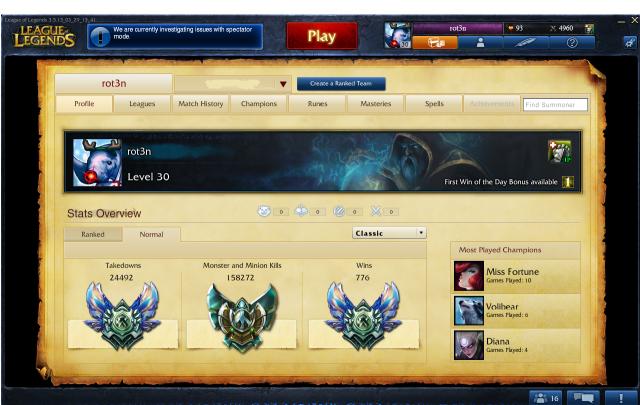 Į accounta buvo sukišta apie 300LT+ ir 3 metai prižiūrėjimo. Daug champu, apie 20+ skinu vienas legendary. Eu West serveryje, jeigu norėsite pereiti į kitą regiona jums nereikės moketi pinigu, nes susikūriau accounta prieš 3 metus kai buvo Europos serveriai buvo neatskirti. Nei kart nebanintas, 3 full rune page. DĖL KAINOS GALIMA DERĖTIS.