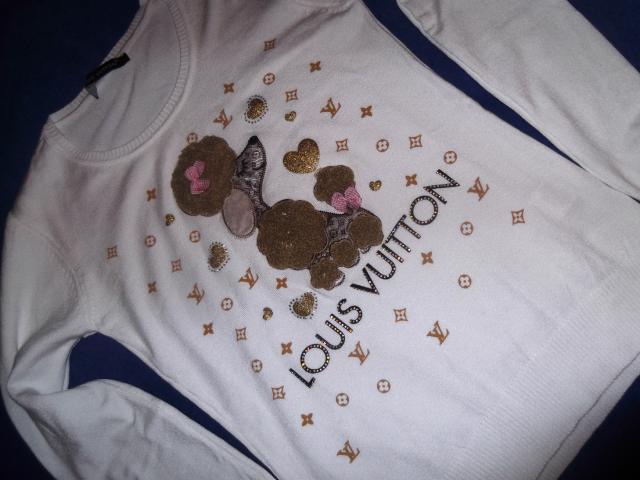 Originalus LV megztukas - kokybiskas, is minksto trikorazo,gerai tempiasi, malonus kunui! Priekyje dekoruotas aplikacija ir blizganciais akmenukais! Dydis universalus. Kaina su siuntimu!
