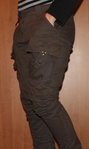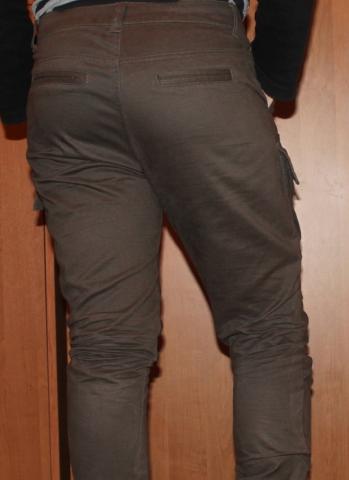 Labai patogios ir madingos firminės kelnės. Medžiaga 100% medvilnė,puikiai tiks nešioti ir žiemą. Per šlaunis laisvesnės, o į apačia siaurėjančios. Per kelius paraukta. Šonuose yra paprastos kišenės ir papildomos dvi didelės, užsegamos. Gale tik kišenių imitacija. Tikrai šaunios kelnės, dėja, man didokos. Rašo dydį S/M, tačiau tiks ir M. Išmatavimai: -liemuo ~42x2cm -visas ilgis ~106cm