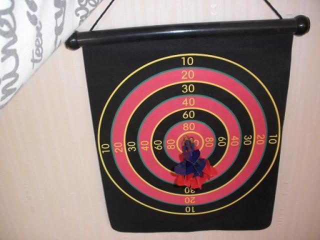 Metant prilimpa dėl strėlyčių galuose esančių magnetukų. Galima suvynioti, todėl patogu kur nors vežtis arba neštis:) yra trys raudonos ir trys mėlynos strėlytės, viena su minimaliu defektu.