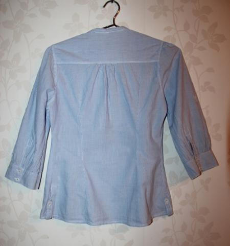 Švelniai melsvos spalvos, su dryžiukais baltais.