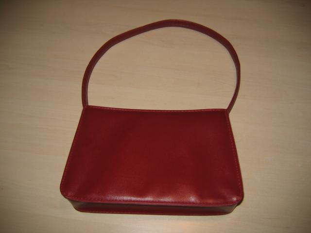 Nenešiota nedidukė raudona rankinė. Elegantiška, gal net proginė, jei prisiderinsite.