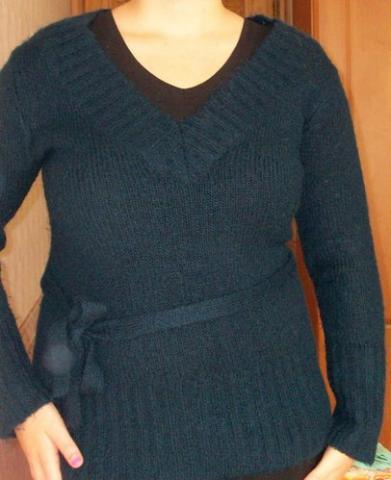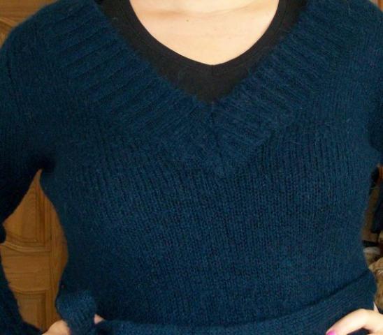 Dydis 14-16 (L-XL). Etiketėje rašo, jog spalva mėlyna, bet pagal mane tai tokia tamsiai žalia spalva. Labai šiltas megztinis.