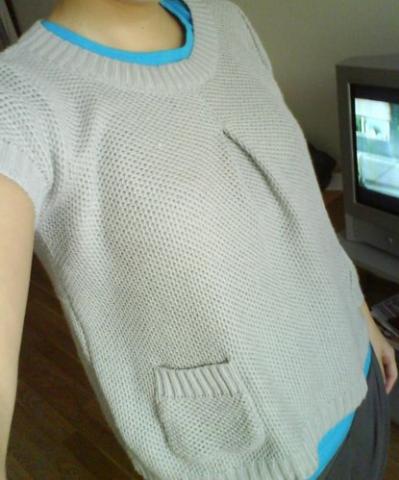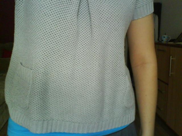 Pilkas megstukas, trumpos rankovės, stilish :) Dydis.. neparašyta :D matavausi ant savęs, mano M tai puikiai